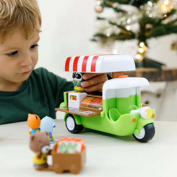 ένα μικρό θαύμα με ρόδες που, με το πάτημα ενός κουμπιού, μεταμορφώνεται σε ένα ολόκληρο μανάβικο γεμάτο φρούτα, λαχανικά και ατελείωτη διασκέδαση!
